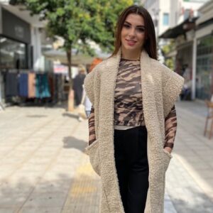 Original price was: 49.90€.29.90€Η τρέχουσα τιμή είναι: 29.90€.Μασίφ ανοιχτό μπροστινό Teddy γιλέκο με κρόσια