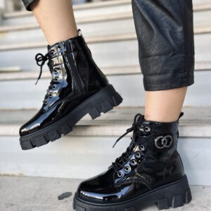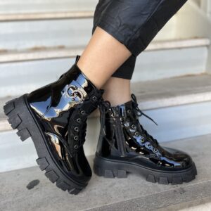 Original price was: 13.90€.6.90€Η τρέχουσα τιμή είναι: 6.90€.Μαύρα Δίπατα Λουστρίν Αρβυλάκια με Εσωτερικό Φερμουάρ και Κορδόνια