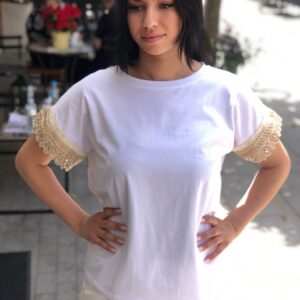 ΜΠΛΟΥΖΑΚΙ ΛΕΥΚΟ ΜΕ ΧΡΥΣΗ ΛΕΠΤΟΜΕΡΕΙΑ ΣΤΑ ΜΑΝΙΚΙΑ
