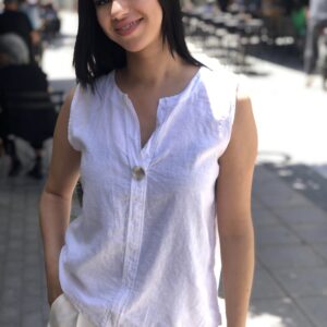 Original price was: 22.90€.14.90€Η τρέχουσα τιμή είναι: 14.90€.ΜΠΛΟΥΖΑΚΙ ΛΙΝΟ ΑΣΠΡΟ ΑΜΑΝΙΚΟ ΜΕ ΧΡΥΣΟ ΚΟΥΜΠΙ