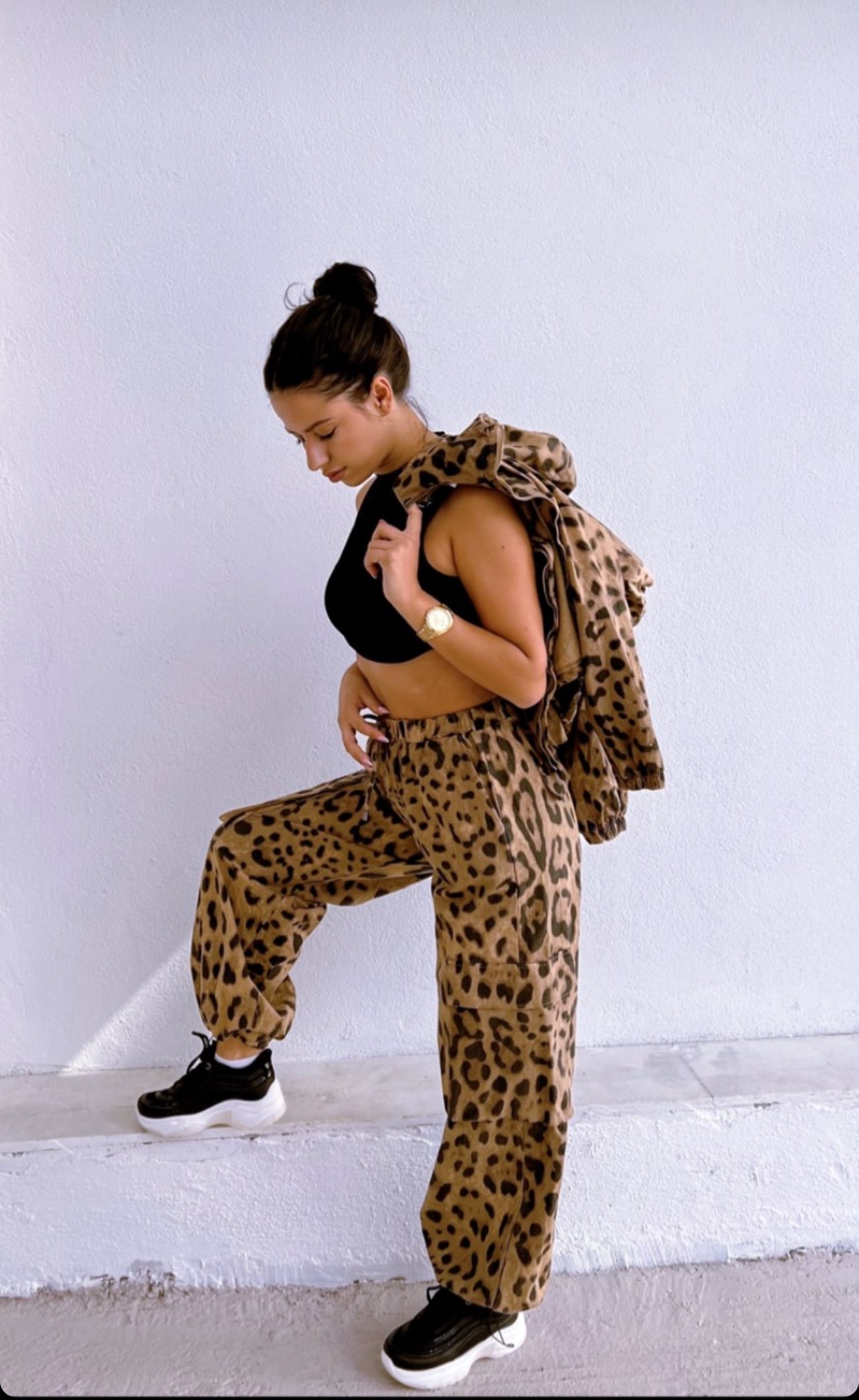 Set AnimalPrint με λάστιχο στο κάτω μέρος του παντελονιού