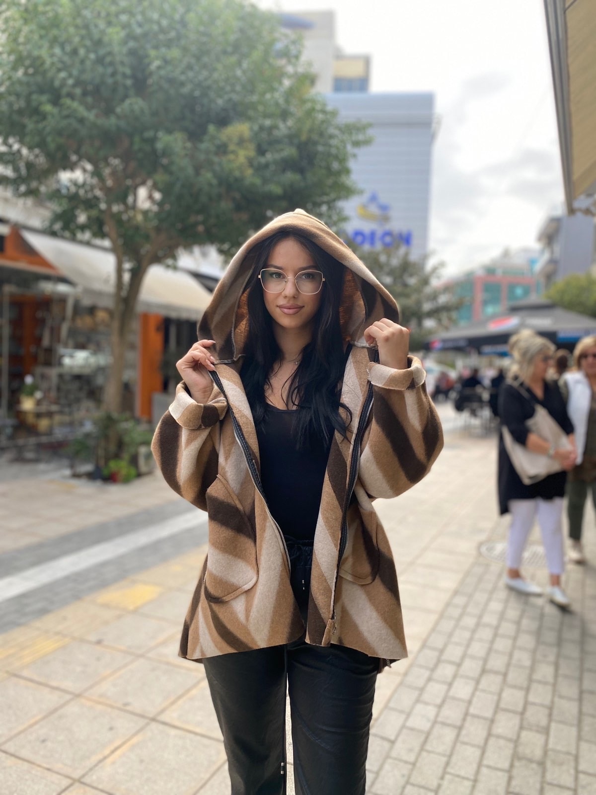 Casual ζακέτα με φερμουάρ και κουκούλα