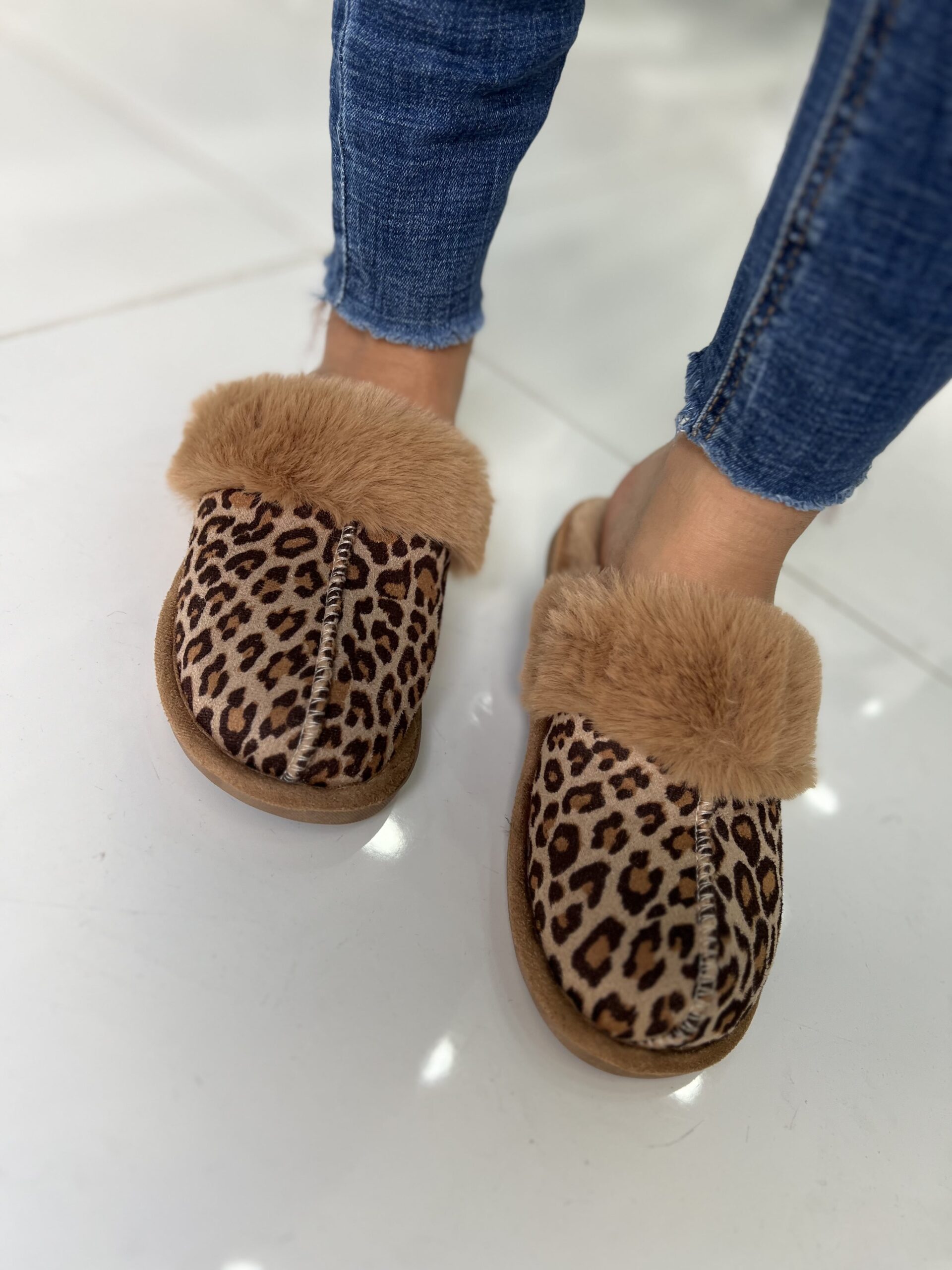 Γυναικείες λεοπάρ παντόφλες (με γούνινη επένδυση)