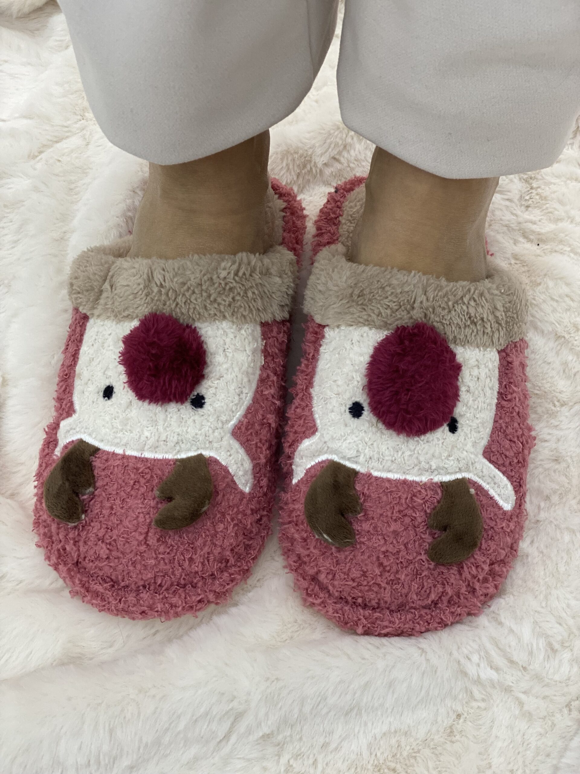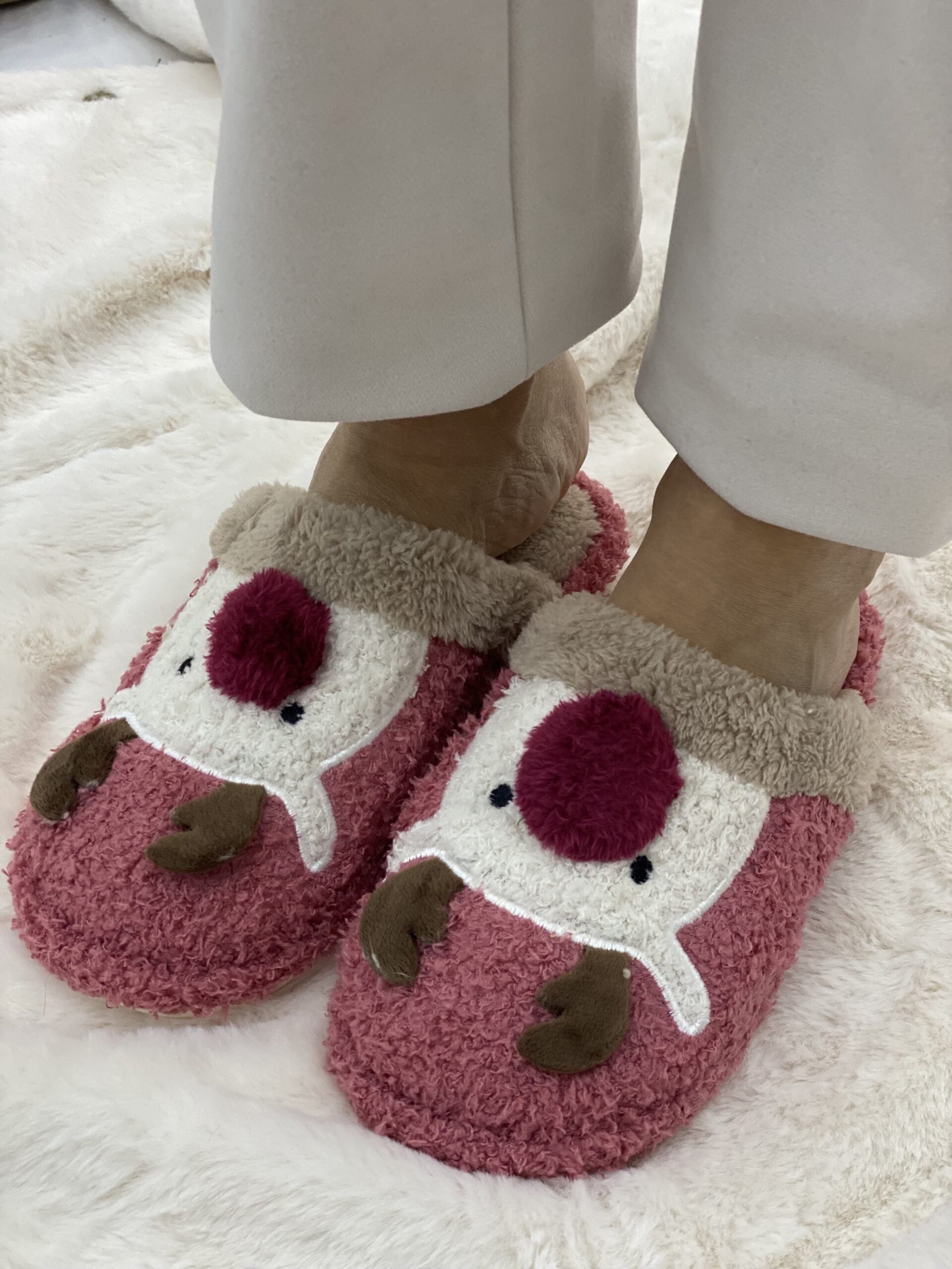 Παντόφλες σπιτιού γούνινες με σχέδιο τάρανδου στο μπροστινό μέρος