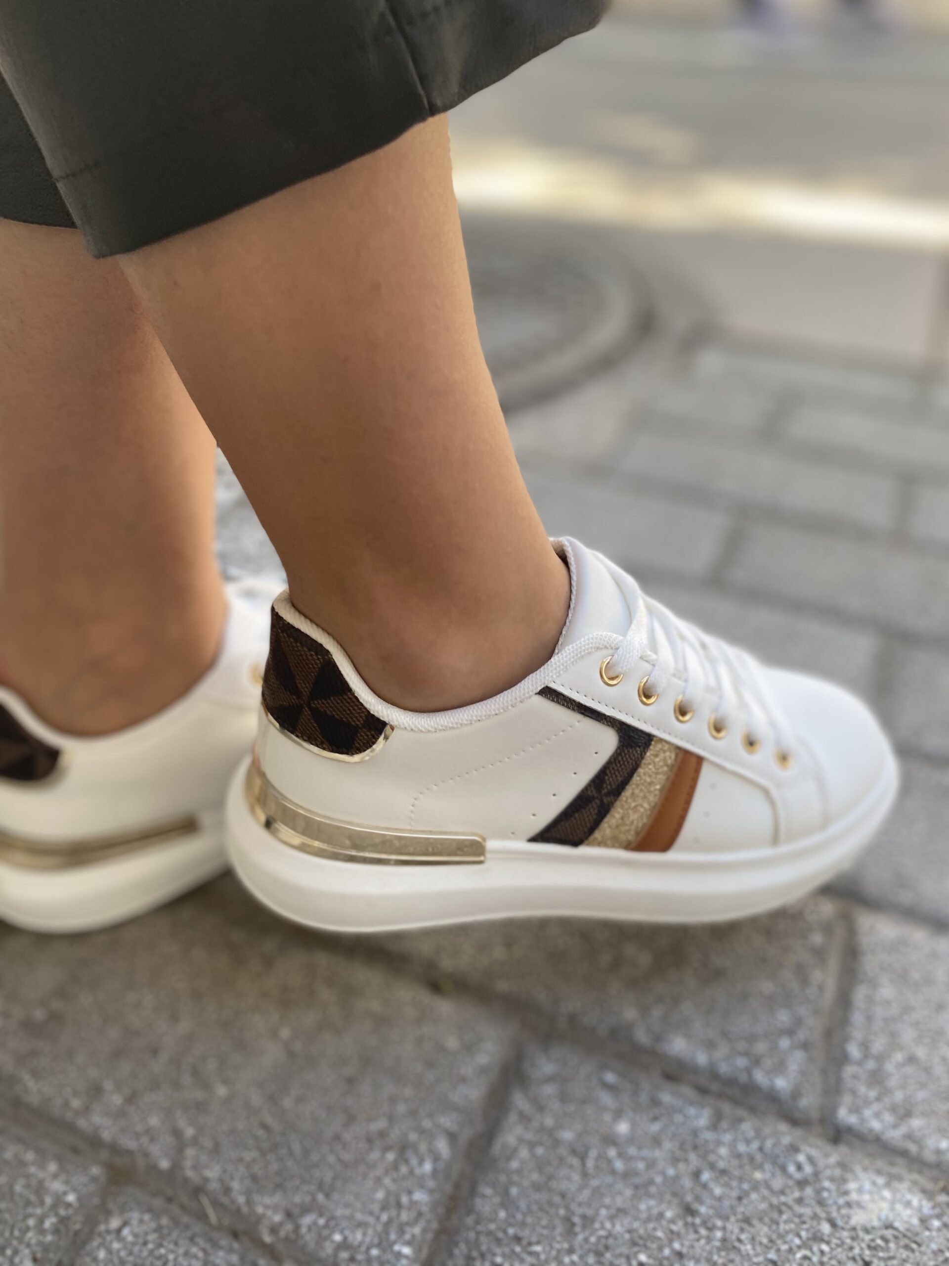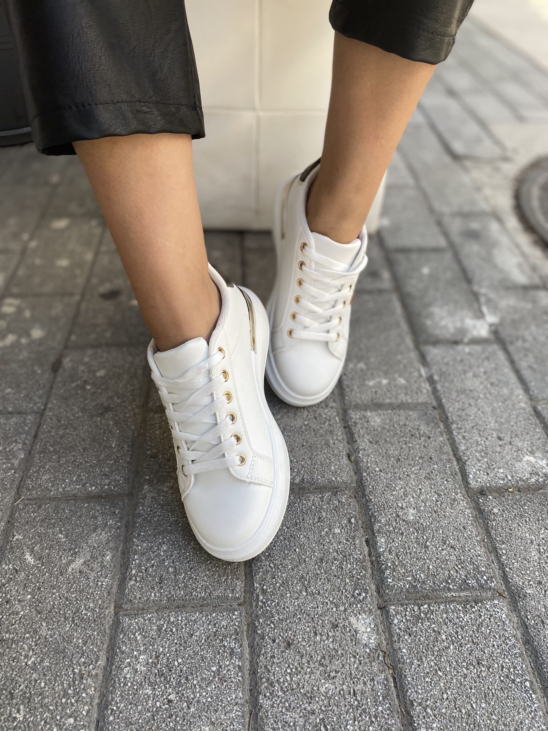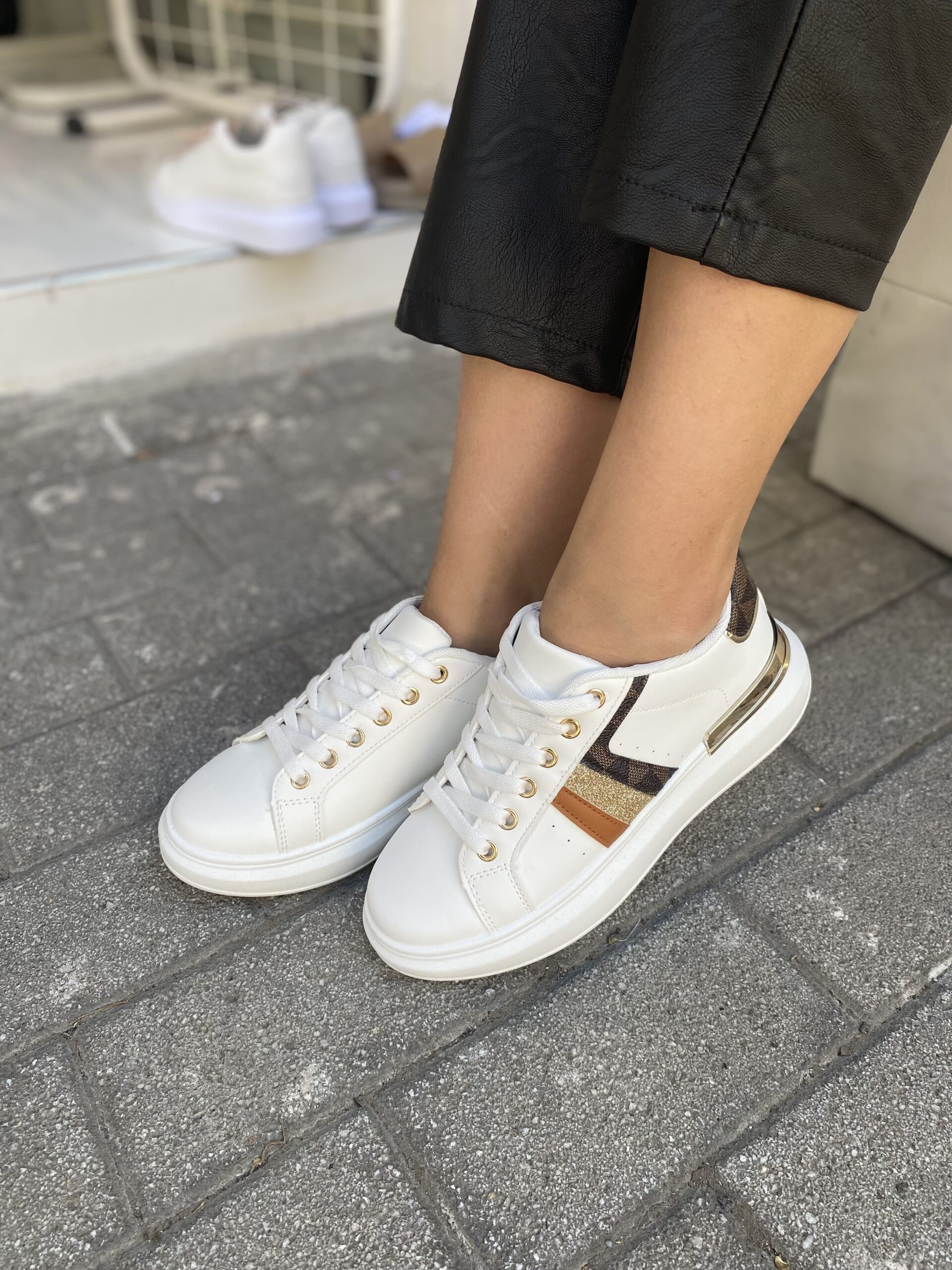 Λευκά σνικερς περιέχουν λεπτομέρειες από μοτίβα. Ιδανικά για καθημερινή χρήση