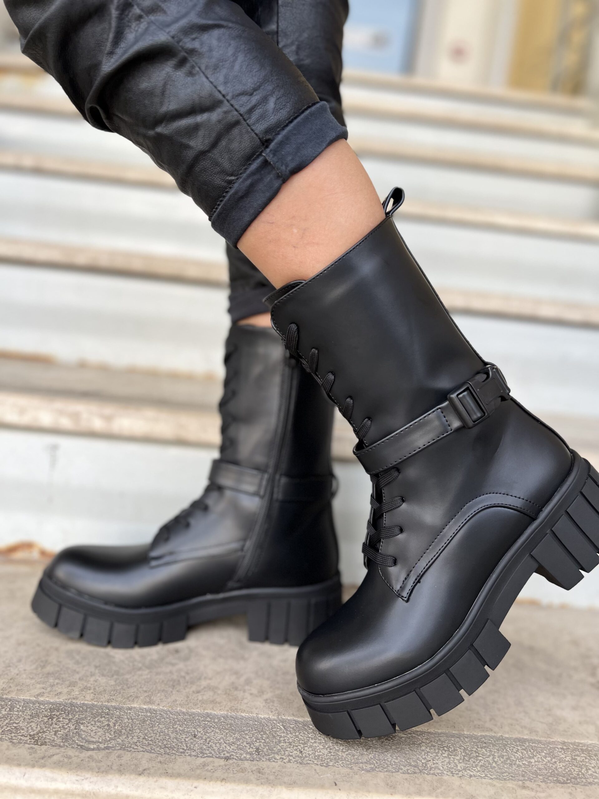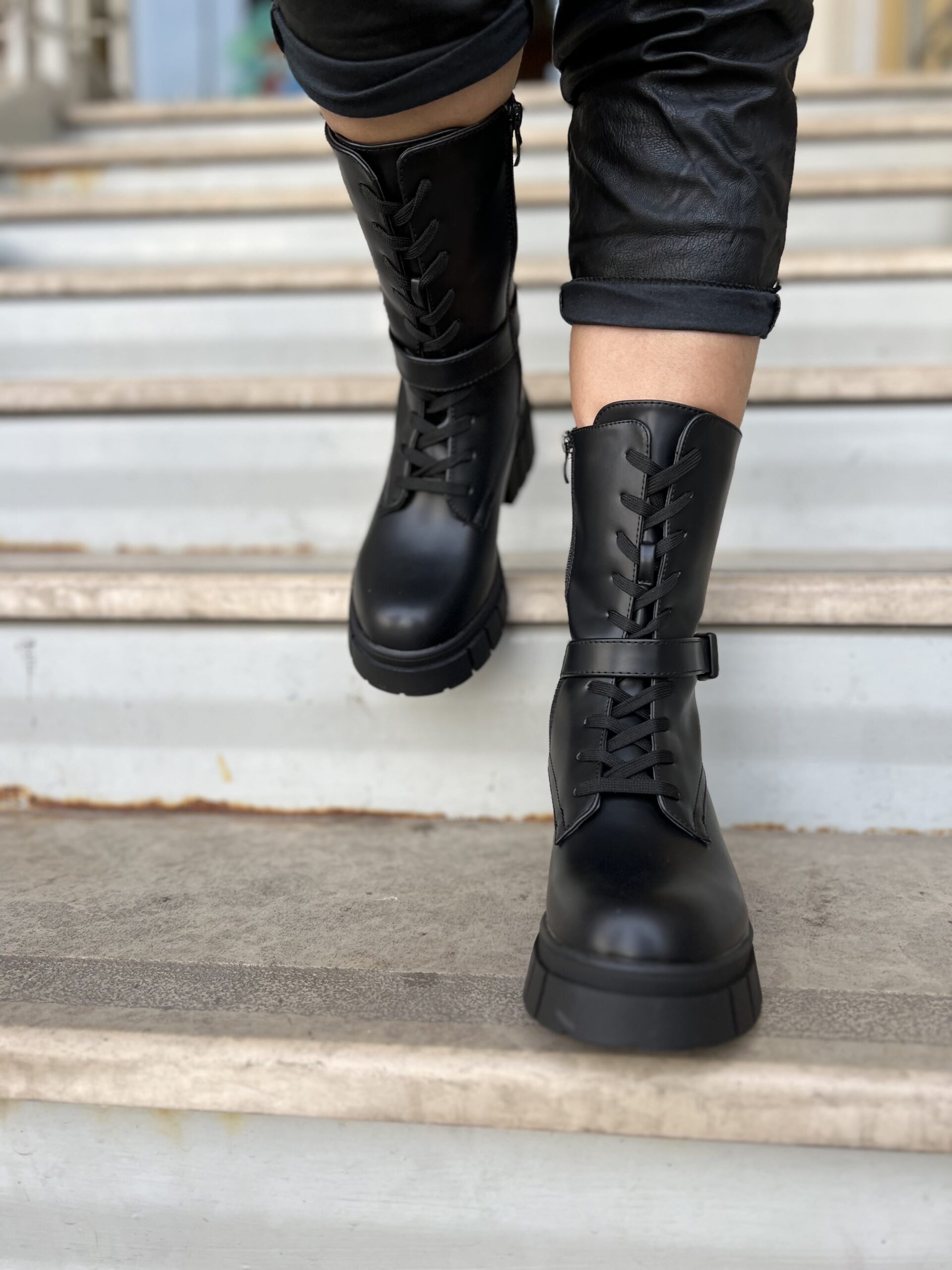 Μποτάκι/Αρβυλάκι δερματίνη με κορδόνια μπροστά αλλα και φερμουάρ στο πλαϊ για μεγαλύτερη ευκολία.