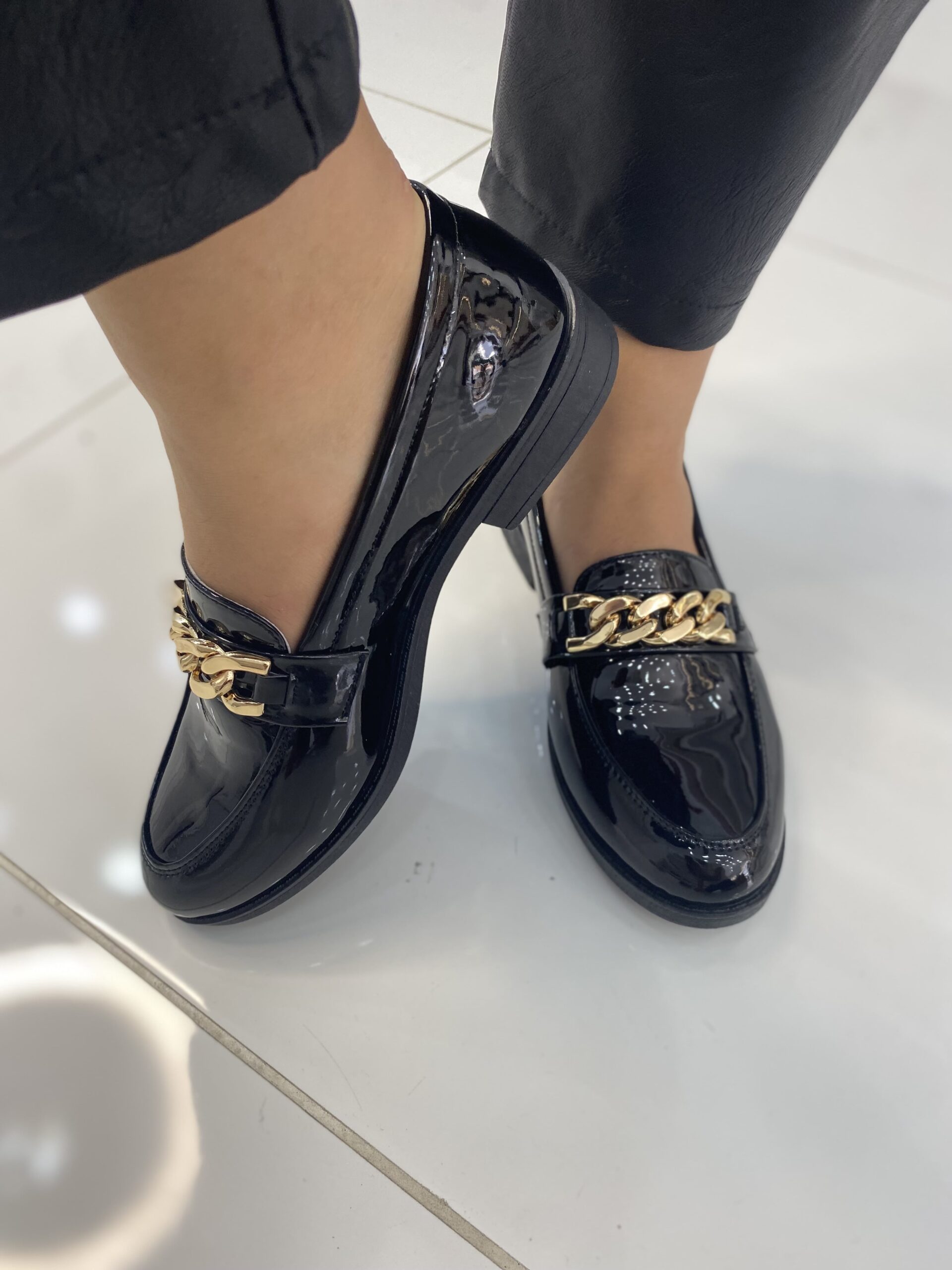 Μαύρα Λουστρίν Μοκασίνια με Χρυσή Αλυσίδα