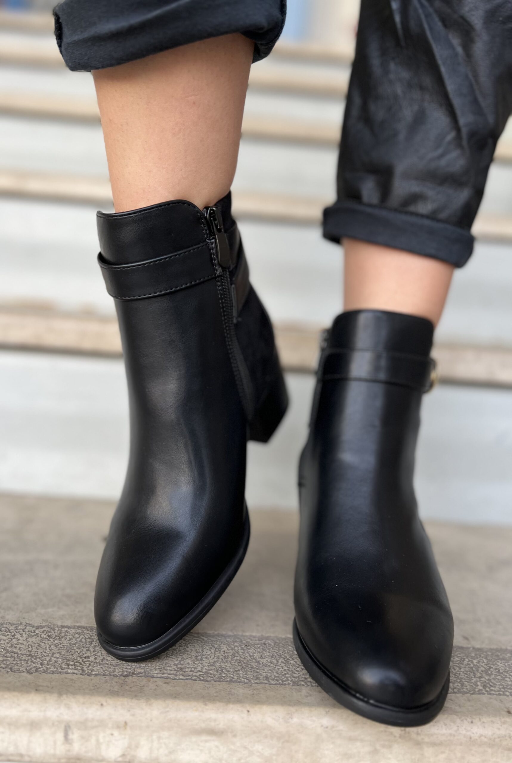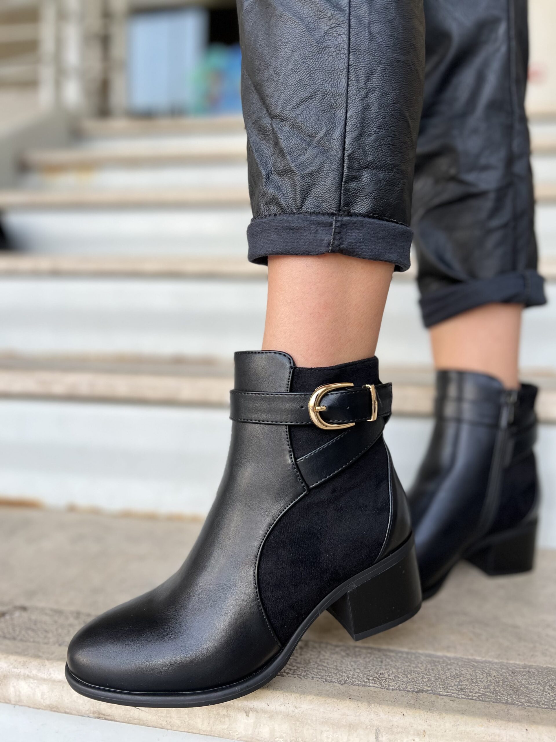 Μαύρα Μποτάκια σε Συνδυασμό Υλικών με Χρυσή Λεπτομέρεια