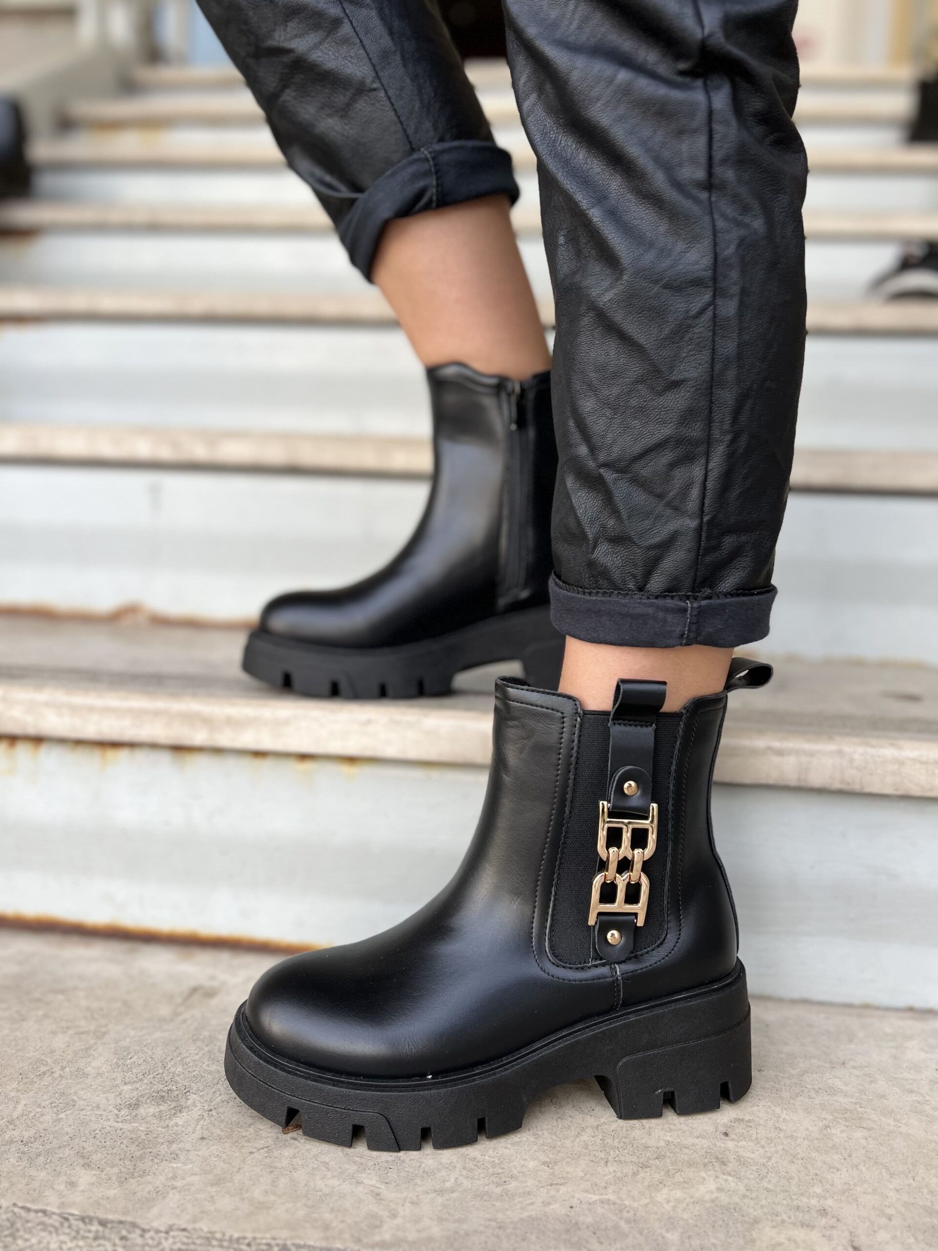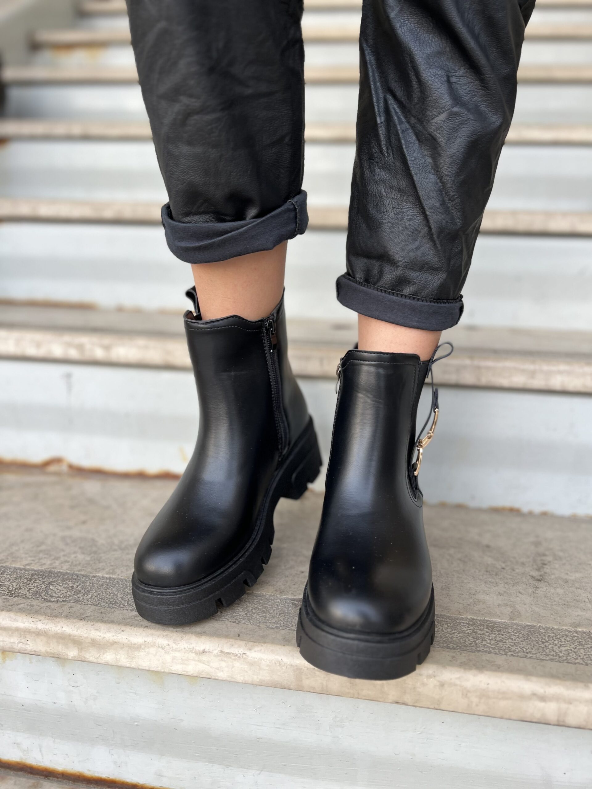 Μαύρα Τρακτερωτά Μποτάκια Με Φερμουάρ
