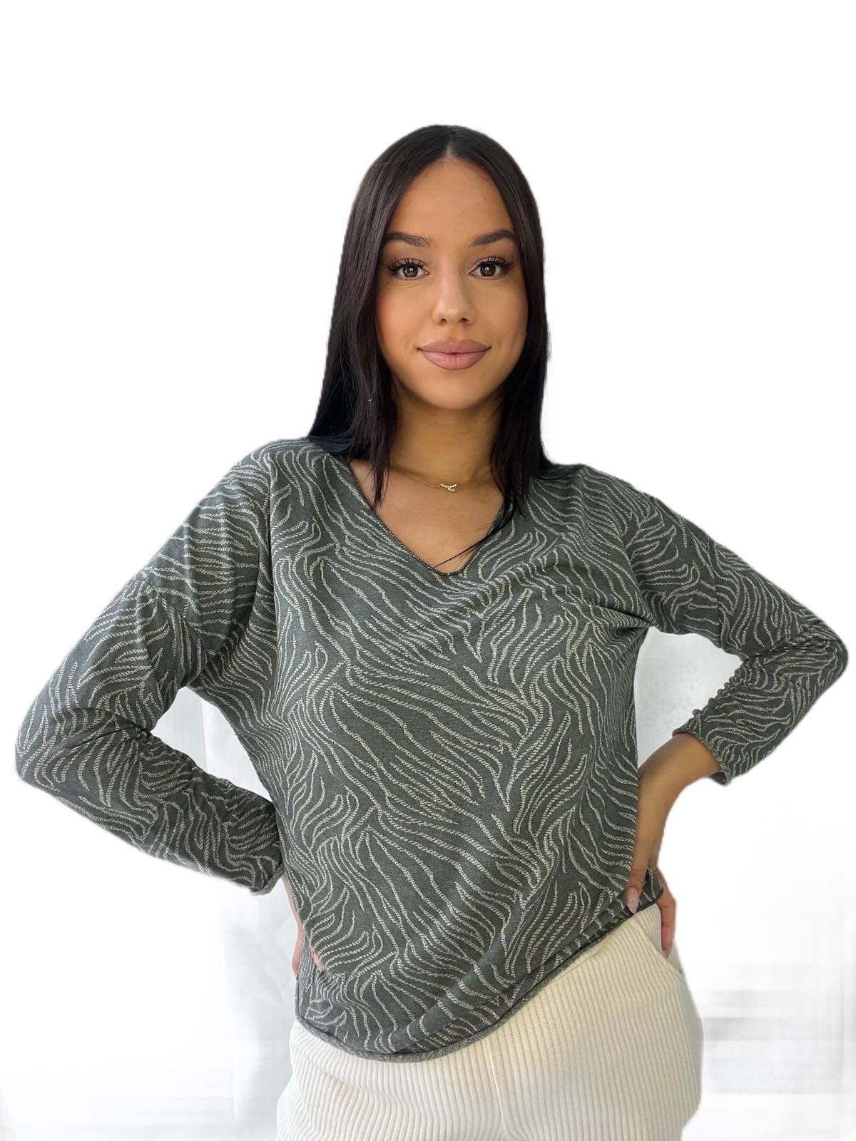 Μπλούζα γκρί εμπριμέ