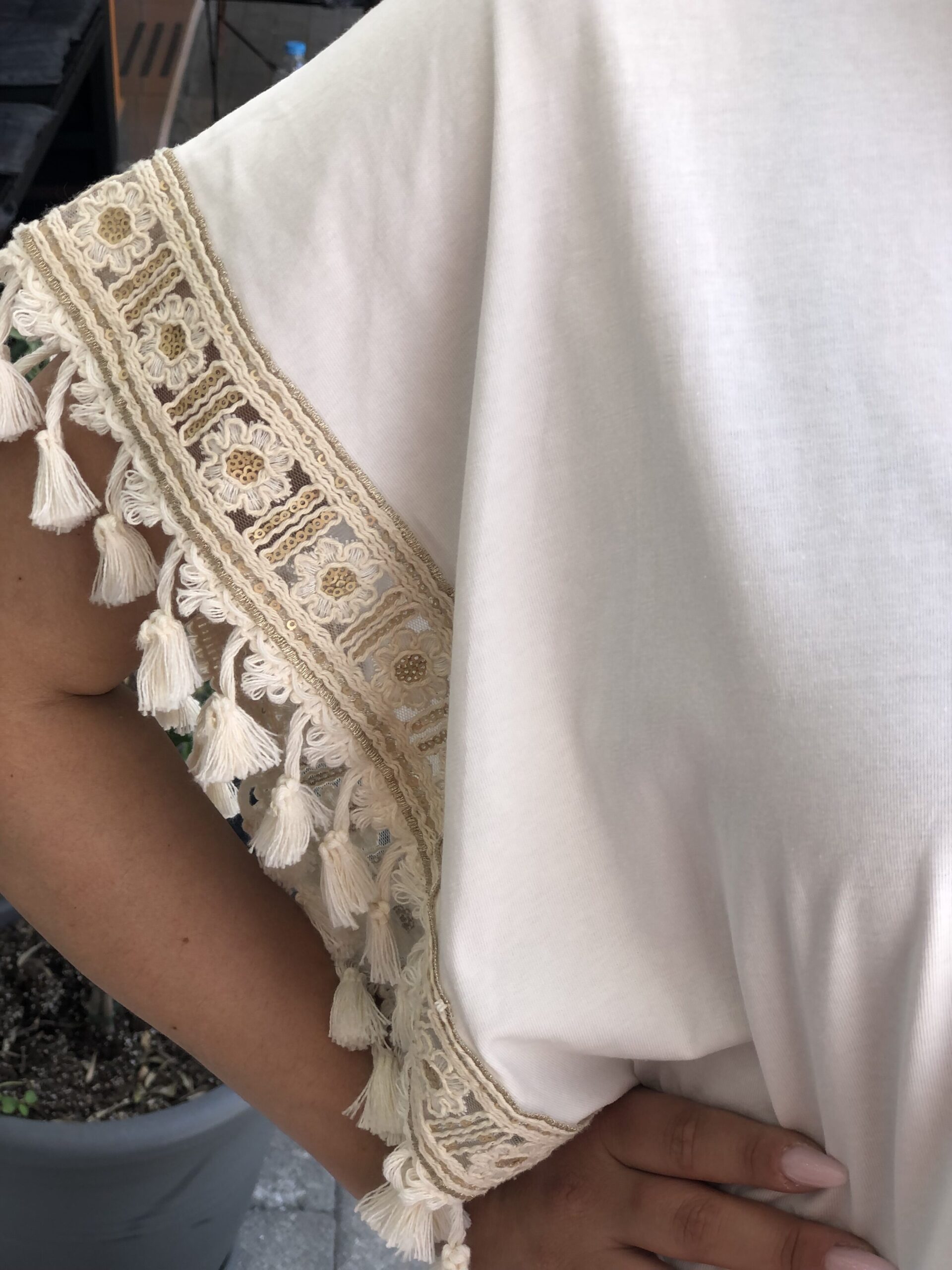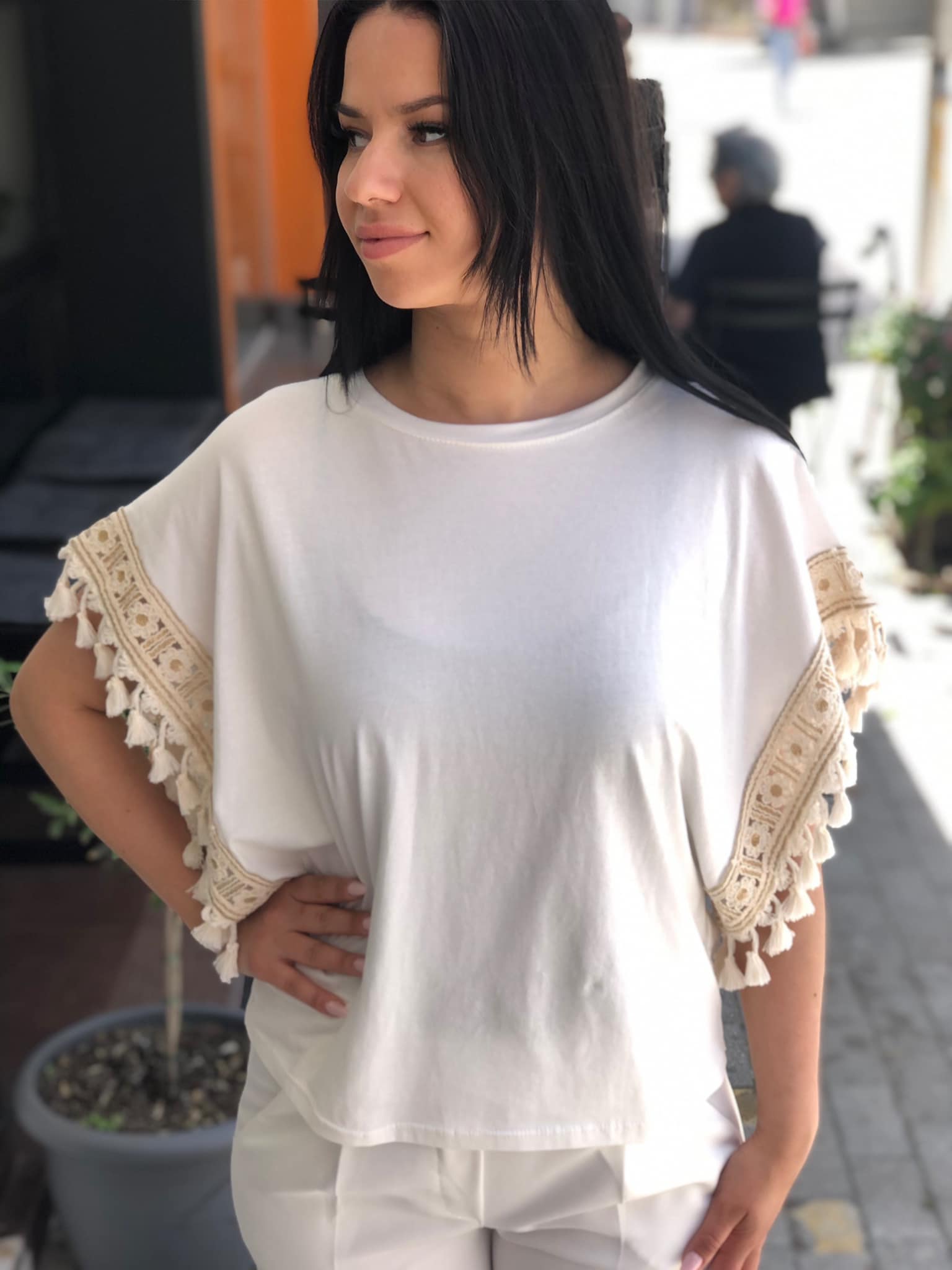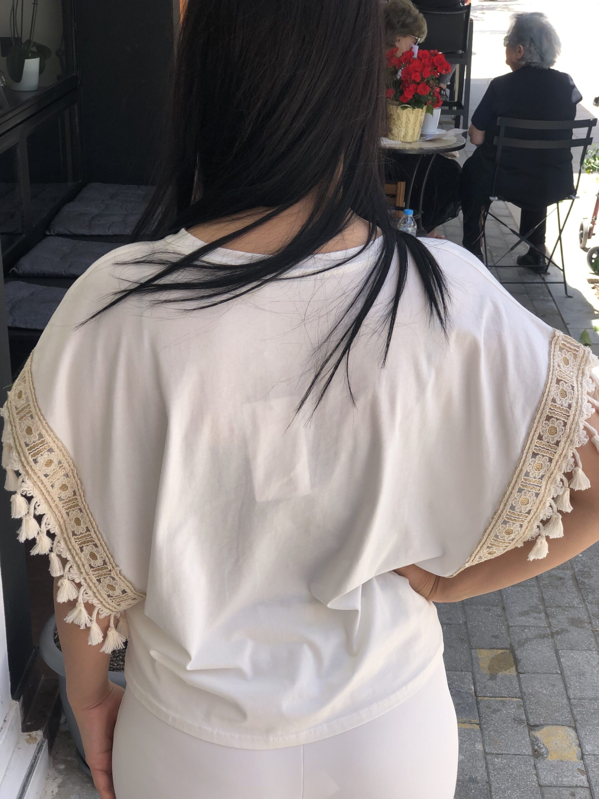 ΜΠΛΟΥΖΑΚΙ ΑΣΠΡΗ ΜΕ ΧΡΥΣΕΣ ΛΕΠΤΟΜΕΡΕΙΕΣ ΚΑΙ ΚΡΟΣΙΑ ΣΤΑ ΜΑΝΙΚΙΑ