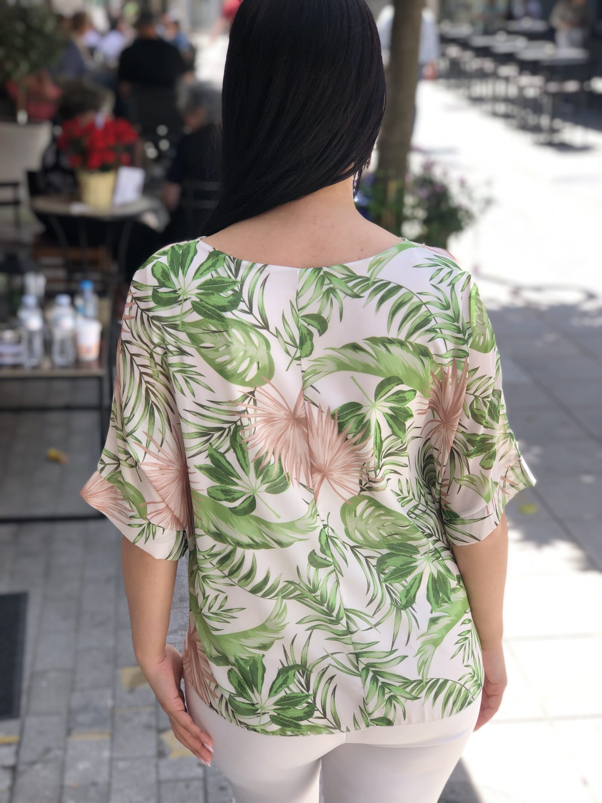 ΜΠΟΥΖΑΚΙ ΦΛΟΡΑΛ ΠΡΑΣΙΝΟ ΜΕ ΜΠΕΖ ΛΕΠΤΟΜΕΡΕΙΕΣ ΜΕ ΜΑΝΙΚΙΑ ΔΙΑΦΑΝΑ 3/4