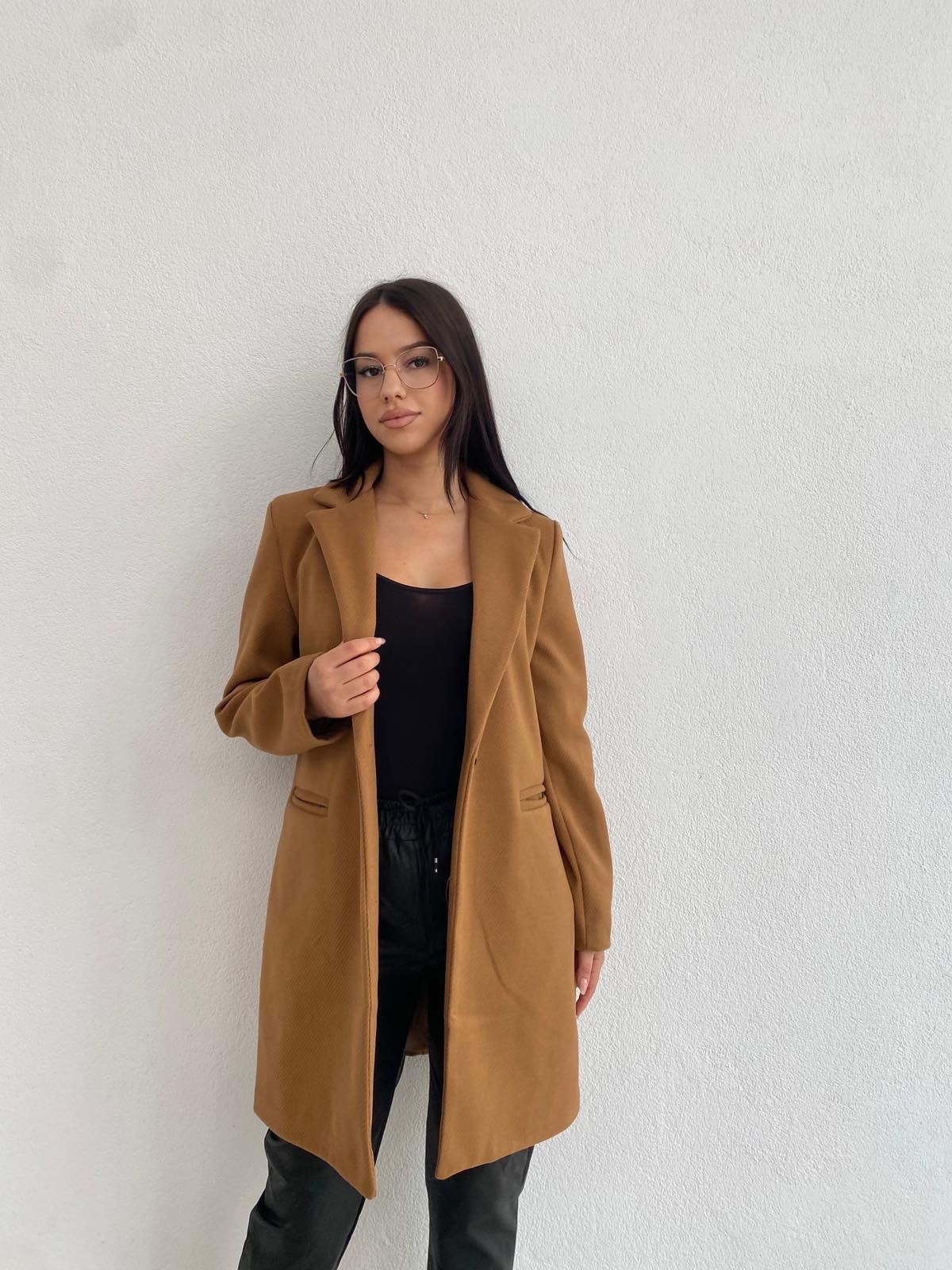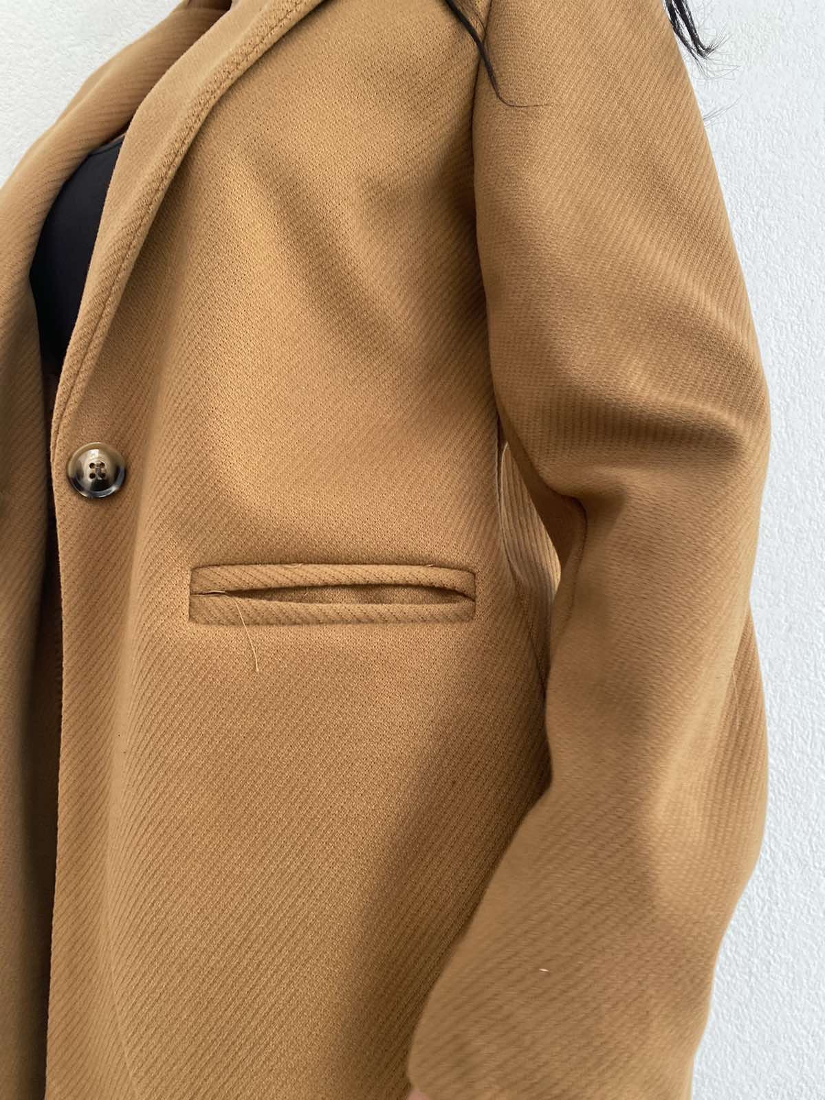 Παλτό μακρύ με κουμπί & τσέπες-Peanut Butter (Ταμπά)