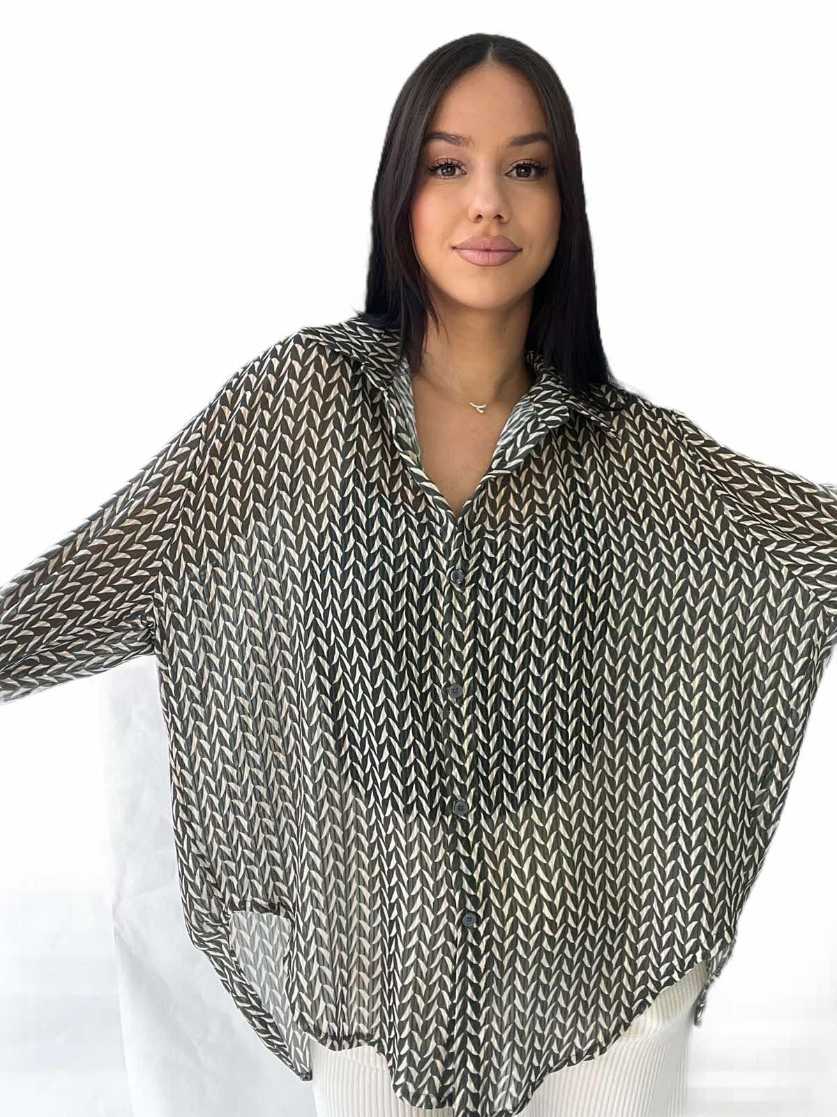 Συθρού πουκαμίσα λαδί με χρυσές λεπτομέρειες