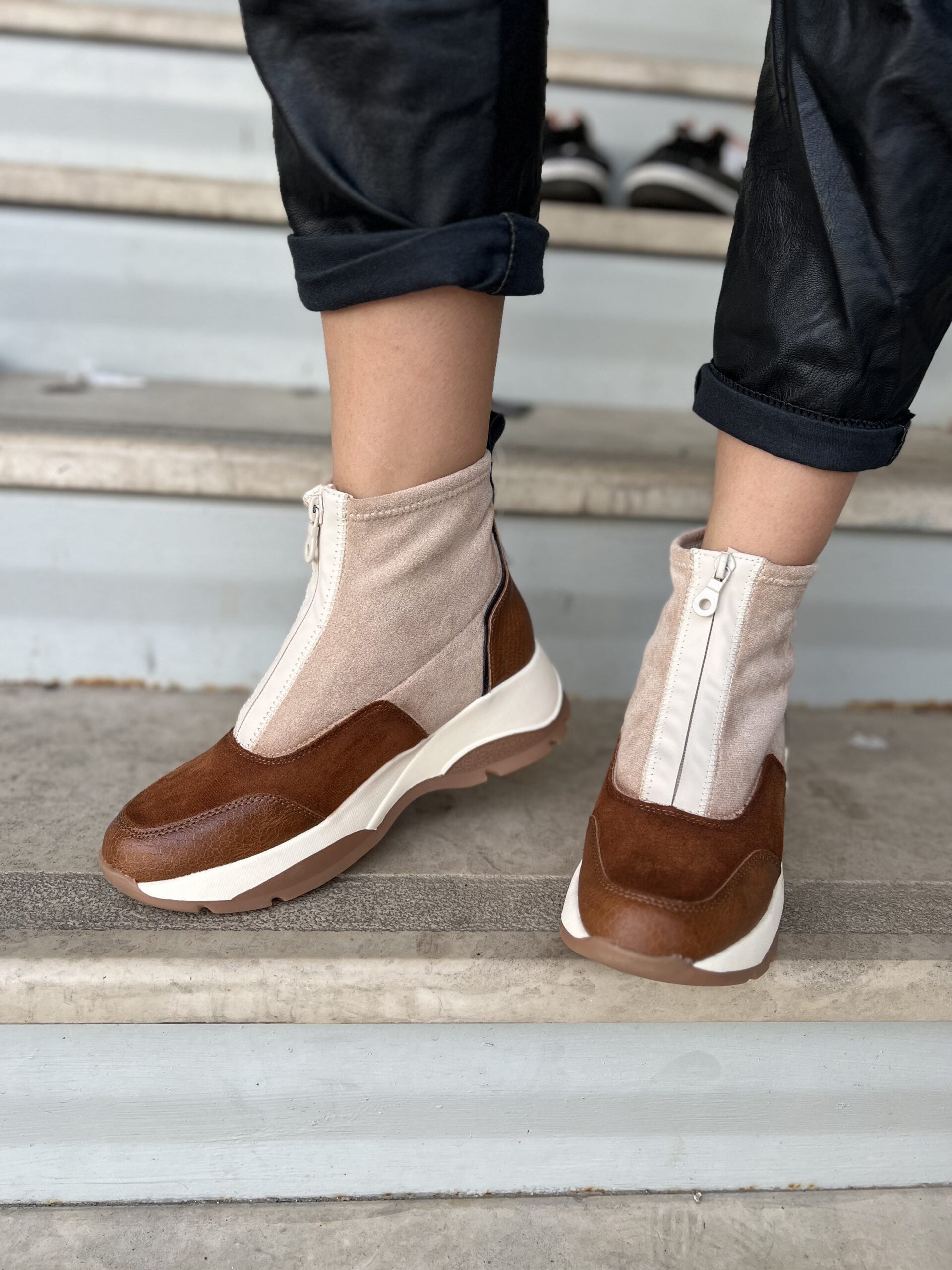Sneaker μποτάκι μπέζ-καφέ με φερμουάρ