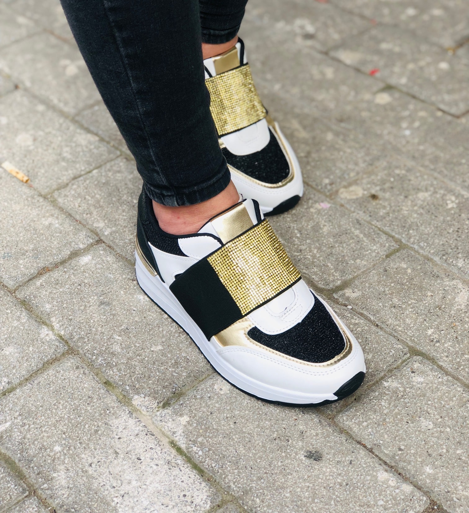 Sneakers μαύρα με χρυσά στρας στο μπροστινό μέρος για εμφανίσεις που θα σας κάνουν να ξεχωρίσετε..!