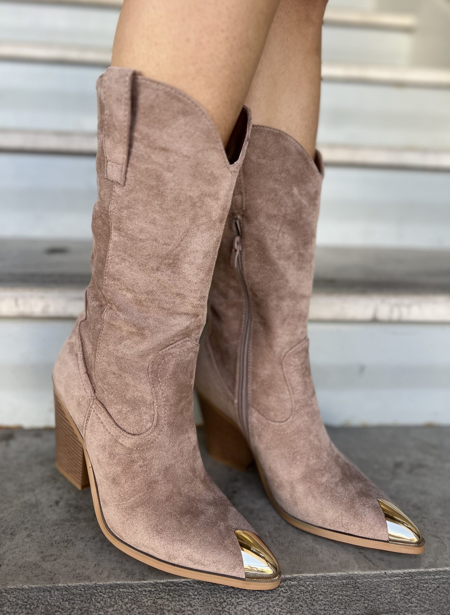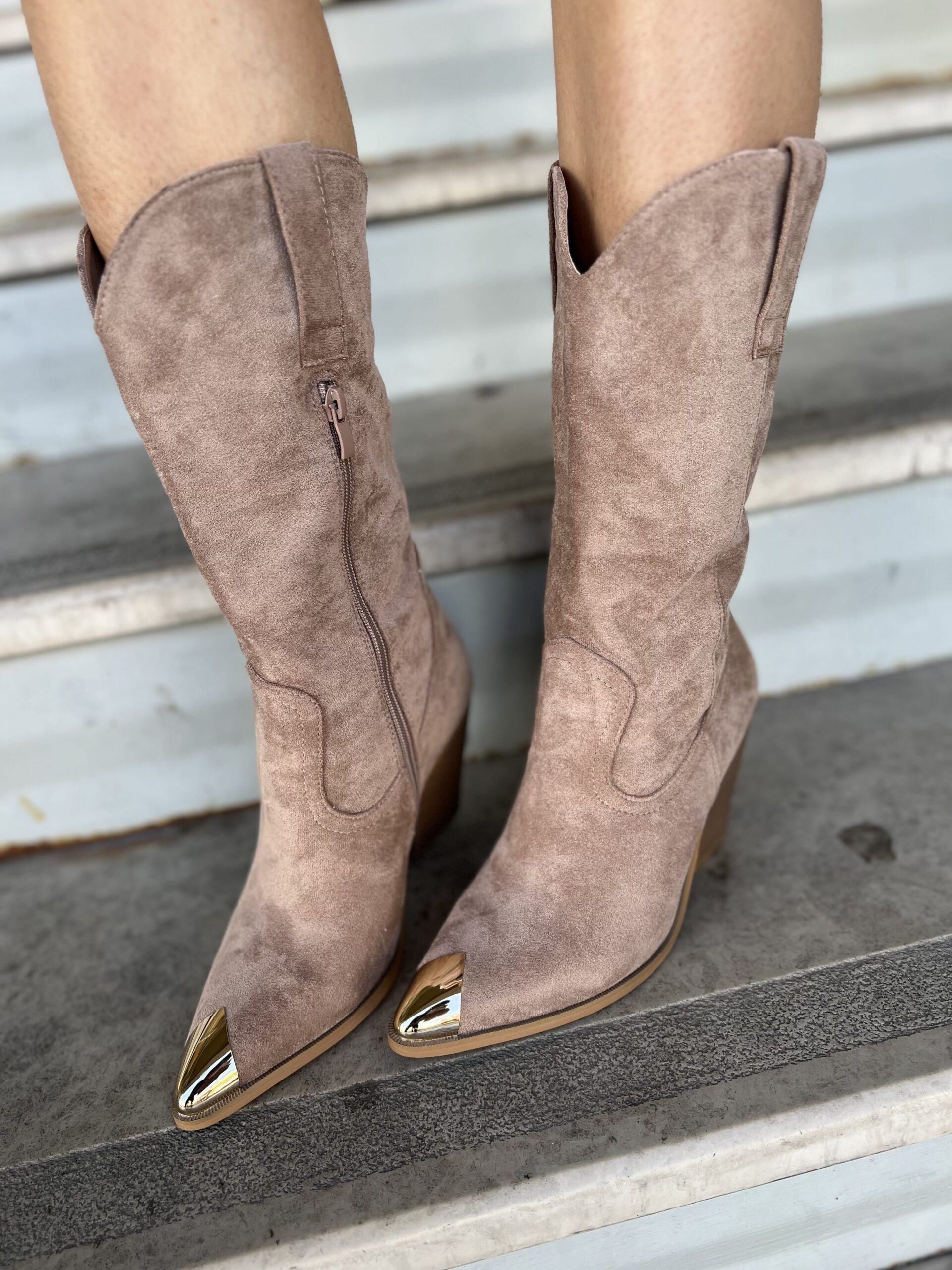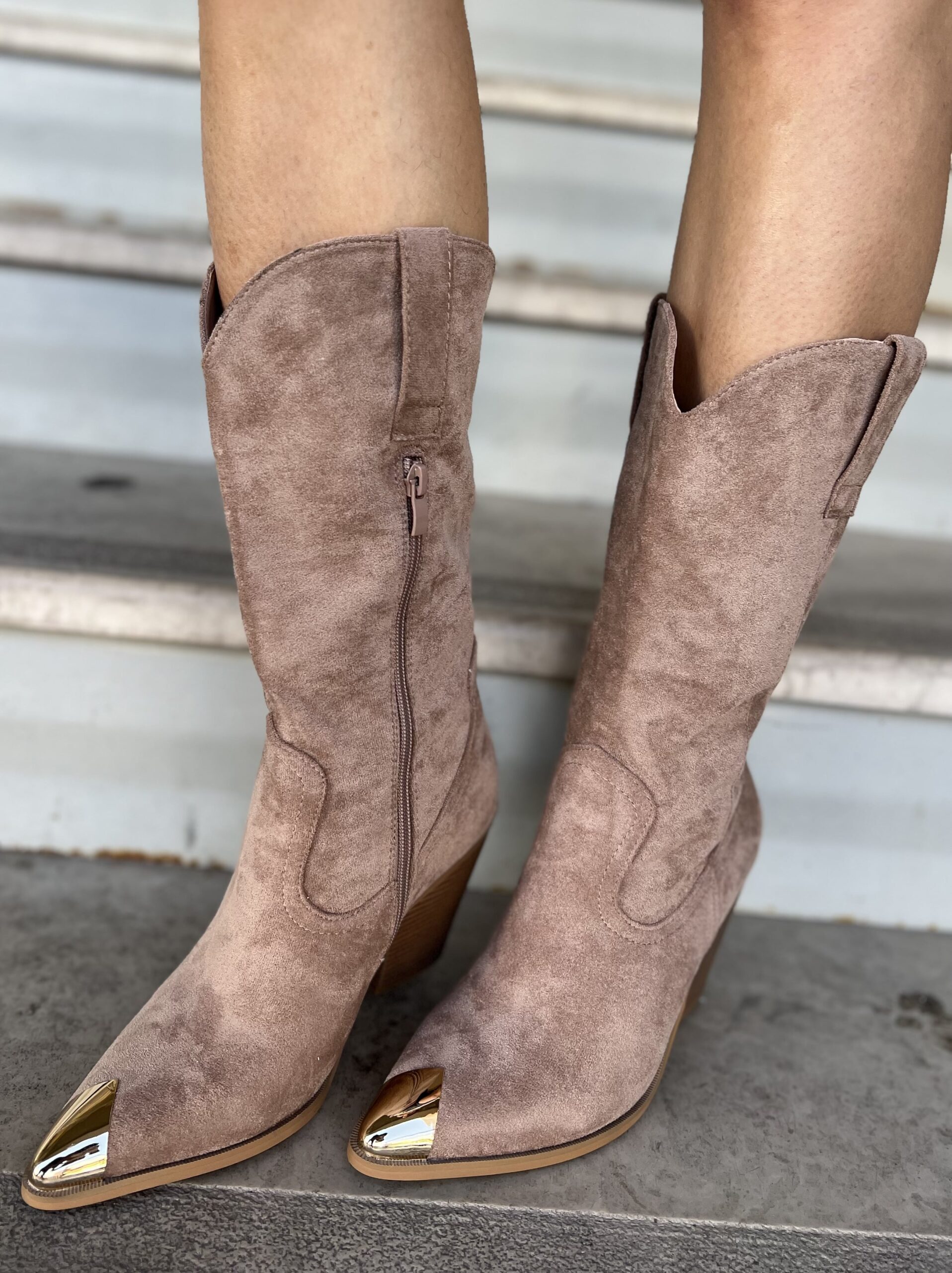 Ταμπά Σουέτ Cowgirl Μπότες με Τακούνι